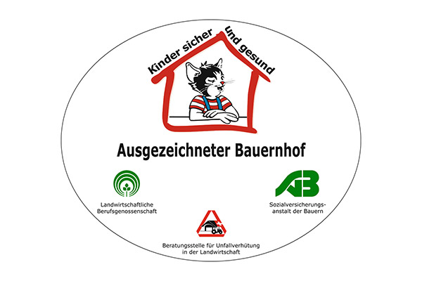 Wir freuen uns, seit August 2012 zu einem der ausgezeichneten Bauernhöfe zu gehören. Die Auszeichnung wird von der Baden-Württembergischen landwirtschaftlichen Berufsgenossenschaft vergeben und ist ein Qualitätssiegel für mehr Kindersicherheit auf dem Bauernhof.